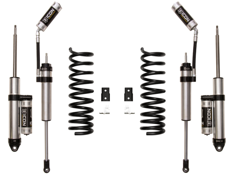 ICON's 2014-UP RAM 2500 4WD 2.5” Stage 2 Suspension System is made up of dual rate front coil springs, necessary bracketry and hardware, as well as 2.5 Aluminum Series reservoir front and rear shocks. This system improves ride quality and performance both on and off road. The ICON stage 2 system is great for towing, rough construction site terrains, and country dirt roads all while keeping a smooth highway feel. ICON 2.5 Aluminum Series reservoir shocks ensure optimum performance by increasing the duration of consistent damping regardless of situation, keeping the shocks at a cooler operating temperature during heavy use. With the endless hours ICON has spent testing and tuning our suspension components and shocks as a complete package, you can rest assured you have the best suspension solution on the market.