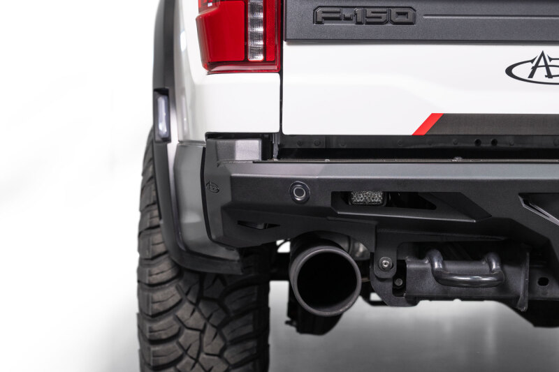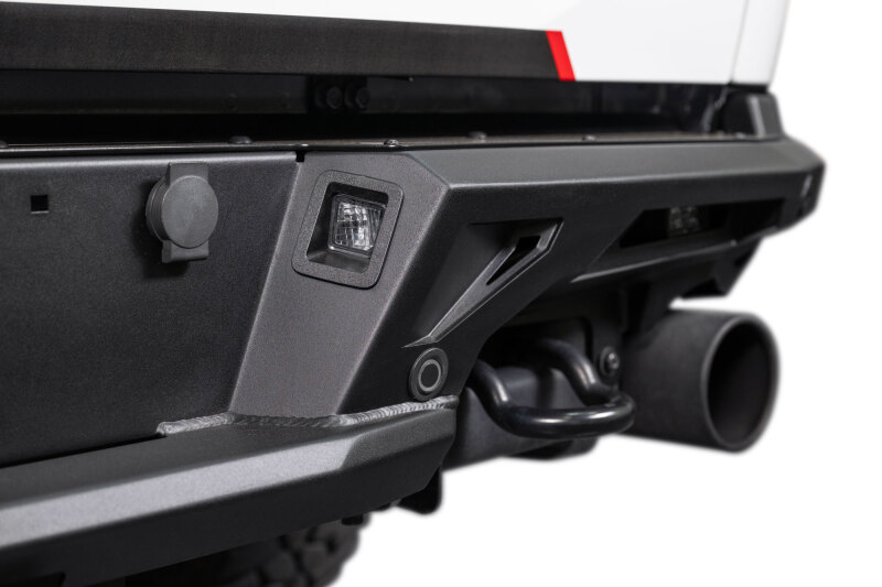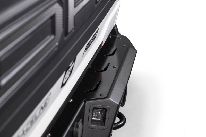 The ADD Edge Rear Bumper gives your Raptor an aggressive, razor-sharp look while adding real off-road functionality. It features integrated center light mounting for (2) Rigid Industries SRM Series or (2) Baja Designs S2 lights, high-clearance sides, and a low-profile fitment. All OEM parking sensors, recovery points, license plate lights, and Drive Assist features are retained for a seamless, bolt-on installation. Finished in Hammer Black powder coat with satin black panels and made in the USA.
