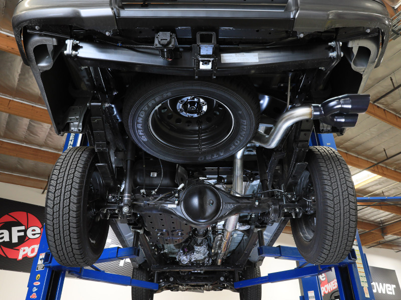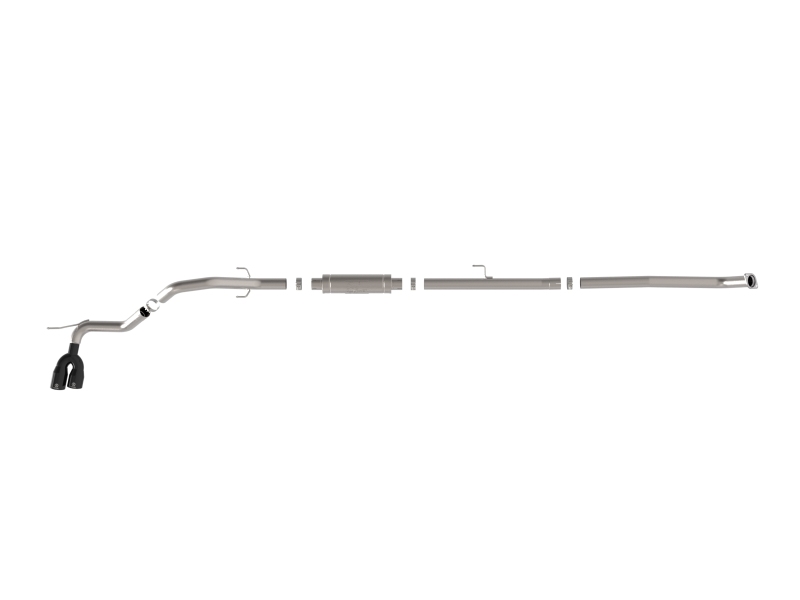 This exhaust system is constructed of 3 IN mandrel-bent 304 stainless steel tubing for maximum strength and durability. Finishing off this exhaust system is a dual 4 IN diameter black 304 stainless steel exhaust tip. The tip features a laser etched aFe POWER logo for a unique style. This system features a high-flow 304 stainless steel muffler, producing a deep sound. This system produces a powerful sound unleashing all available horsepower and torque. Utilizing a factory style flange and hangers this system is a direct bolt-on system, which requires no cutting or modifications for a hassle-free installation. State-of-the-art computer-aided design technology is utilized for precise vehicle fitment. 100% MIG-Welded for race-proven strength and durability.