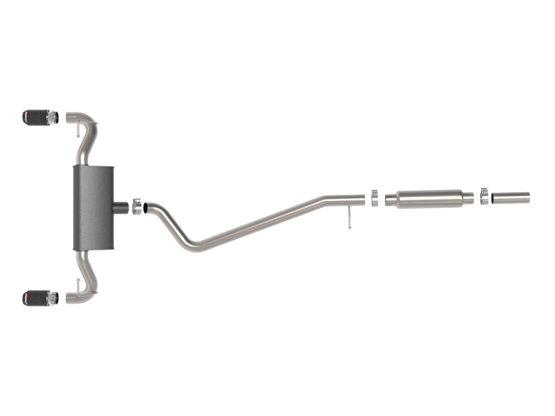 This cat-back exhaust system is constructed of 2-1/2 IN mandrel-bent 304 stainless steel tubing for maximum strength and durability. This system features a high-flow 304 stainless steel muffler, producing a throaty sound. Finishing off this exhaust system are dual 2-1/2 IN diameter carbon fiber 304 stainless steel clamp-on exhaust tips. The tips features an aFe POWER logo for a unique style. This system produces a throaty sound unleashing all available horsepower and torque. Cutting required, see instruction sheet for further information. Utilizing factory style hangers this system mounts directly to factory mounting locations for a hassle-free installation. State-of-the-art computer-aided design technology is utilized for precise vehicle fitment. 100% MIG-Welded for race-proven strength and durability.