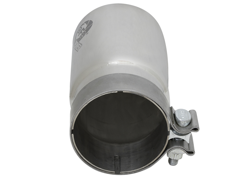 aFe Power is proud to introduce an all new exhaust tip. This tip comes with a high luster polished finish and is designed to fit 3-1/2" exhaust systems. With a 3-1/2" inlet x 4" outlet and 7" inch length, this single-walled, straight cut tip comes with unique laser-etched aFe Power logo for an aggressive style.