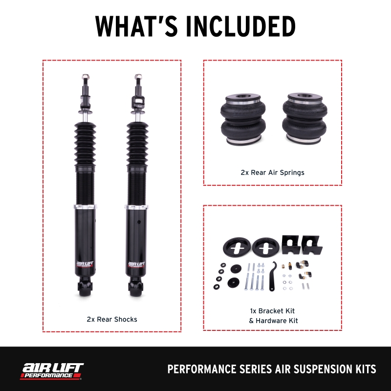 Take your Audi or Volkswagen (Fits FWD and 55mm front dampers only) to the next level—down low—with Air Lift Performance rear air suspension. Designed to match the aggressive look and feel of today’s Audi and VW sedans and coupes, this rear kit ensures your stance is on point without compromising on comfort or handling. With air spring end caps crafted from silver-anodized T6061 aluminum and progressive-rate bellows over performance shocks, you’ll drive low and look good doing it. Drop your Audi or VW up to 5.8" (147mm) from stock in the rear while retaining street-ability and comfort. Engineered for real-world conditions, our suspension components are torture-tested to over 1 million cycles in extreme climates. Backed by a limited warranty and Air Lift’s commitment to support, this rear suspension system is built to perform and to last. Air Lift Performance has led the air suspension market for over 75 years. To ensure quality, all major suspension components are torture-tested for over 1 million cycles on our hydraulic test rigs under temperature extremes from -30°F to 150°F. Ready to redefine your ride? Find a dealer and experience the new standard in lowered Audi and VW performance.
