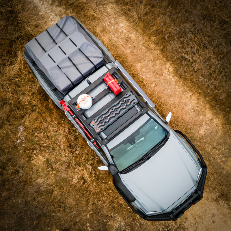 The BASE Rack takes accessories and cargo loading to a whole new level of simplicity, speed, and personalization. The BASE Rack is fully-welded aluminum for lightweight strength that doesn't flex under load. It can therefore be mounted close to the vehicle roof for a slimline aesthetic and reduced drag. Its dovetail extrusion attachment system runs the full perimeter of the rack and along each internal beam providing endless mounting and attachment options. Adding, removing, and repositioning accessories and roof loads is quick and easy and individual items may be installed or removed without disturbing the whole load. Unlike traditional roof rack channels, the BASE Rack dovetail system doesn't collect dust and debris. This kit includes a 49 in (L) x 51 in (W) BASE Rack, mount kit with wind deflector to suit the Toyota Tacoma. The wider rack option allows for more accessories to be hung to the side without interference with the vehicle. It also allows for certain accessories such as aux lights to be mounted underneath the rack and for accessories to be mounted east-west (e.g., recovery boards) offering greater flexibility with cargo loading.