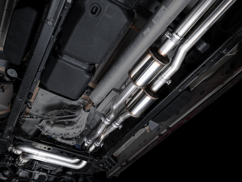 A true dual, full 3” catback configuration built for standard and high output models featuring a internally lined stainless steel flex sections at the inlets, bespoke X-pipe and AWE’s patented drone-canceling 180 Technology®, the 0FG delivers a deep, rasp-free tone at wide open throttle—while staying composed and drone-free within the cabin at cruising speeds. A clean, straight-through design maximizes performance with no cutting required—just bolt on and go.