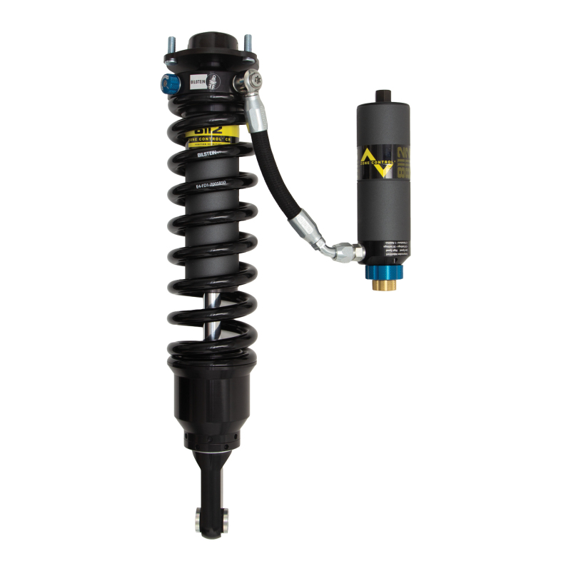 Bilstein B8 8112 (ZoneControl CR DSA+) is a direct fit, 3-way adjustable, 2.65-in body, position sensitive coilover shock designed for light trucks and SUV’s. ZoneControl CR DSA+ is a revolutionary technology delivering position sensitive damping plus user Dual Speed Adjustability. The system incorporates a triple piston design, offering 3 stages of compression valving and 2 stages of rebound valving. Click adjuster knobs allow easy and precise Dual Speed Adjustment of both low and high speed compression plus an adjustable JCO (internal hydraulic bump stop). The coilover module utilizes a threaded spring seat for ride height adjustability ranging from 0-3” (depending on application). It is supplied with a remote reservoir for increased cooling along with an accompanied, bolt-on anodized reservoir chassis mount. Bilstein B8 8112 (ZoneControl CR DSA+) position sensitive Dual Speed Adjustable coilovers offer unparalleled ride comfort during every day driving combined with maximum control over large suspension inputs with the ability to quickly adjust the shock to tackle any terrain.