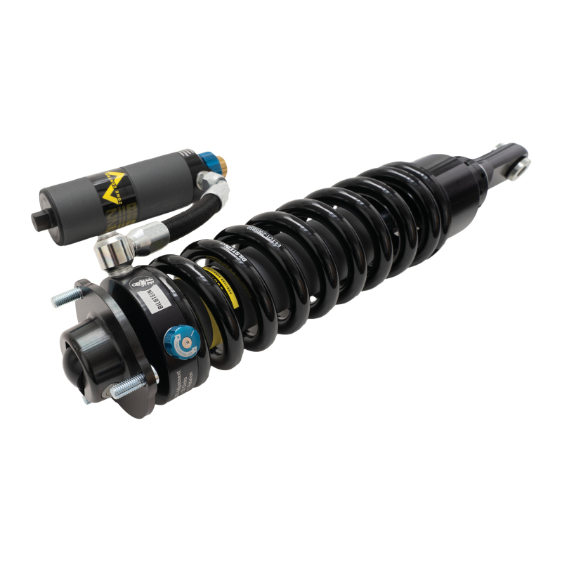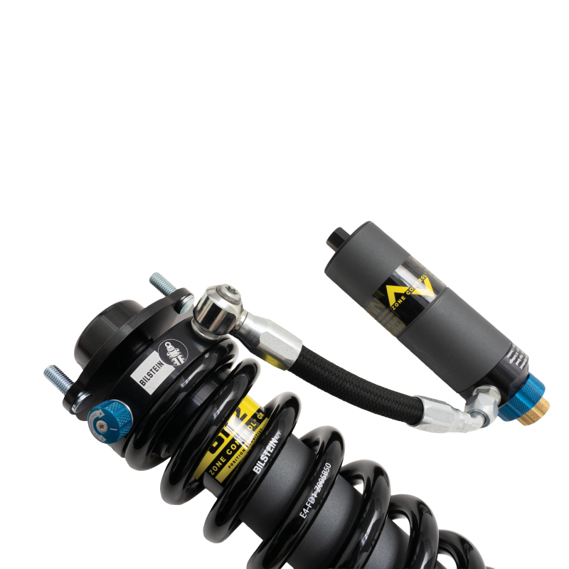 Bilstein B8 8112 (ZoneControl CR DSA+) is a direct fit, 3-way adjustable, 2.65-in body, position sensitive coilover shock designed for light trucks and SUV’s. ZoneControl CR DSA+ is a revolutionary technology delivering position sensitive damping plus user Dual Speed Adjustability. The system incorporates a triple piston design, offering 3 stages of compression valving and 2 stages of rebound valving. Click adjuster knobs allow easy and precise Dual Speed Adjustment of both low and high speed compression plus an adjustable JCO (internal hydraulic bump stop). The coilover module utilizes a threaded spring seat for ride height adjustability ranging from 0-3” (depending on application). It is supplied with a remote reservoir for increased cooling along with an accompanied, bolt-on anodized reservoir chassis mount. Bilstein B8 8112 (ZoneControl CR DSA+) position sensitive Dual Speed Adjustable coilovers offer unparalleled ride comfort during every day driving combined with maximum control over large suspension inputs with the ability to quickly adjust the shock to tackle any terrain.