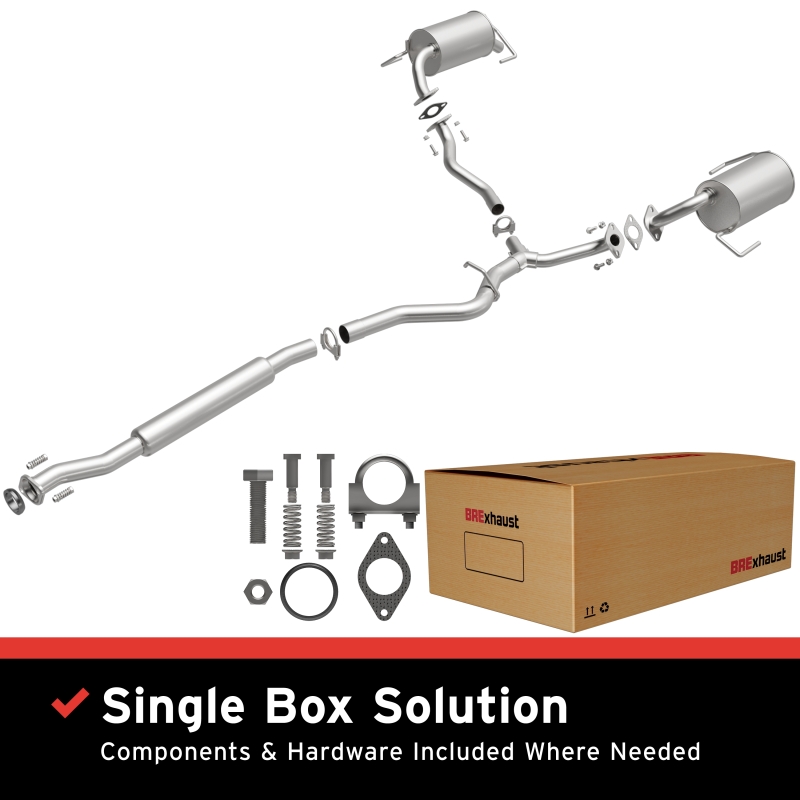 BRExhaust Direct-Fit Replacement Exhaust Kit 106-0068 takes the guesswork out of replacing your 2005-2009 Subaru Outback 2.5L exhaust system while providing a reliable and high-quality alternative to the OEM exhaust. You will find all of the gaskets and clamps needed to get the job done in the carefully packaged box. 106-0068’s precision mandrel bent pipes facilitate superior exhaust flow compared to the crush-bent pipes commonly used in competing aftermarket replacement exhaust systems. The multi-piece, bolt-on design ensures the exhaust system is easy to install yourself and fits perfectly to help get you back on the road in no time. No bending or welding is required for installation. BRExhaust Direct-Fit Replacement Exhaust Kit 106-0068 features durable aluminized steel construction and is covered by a 2 year warranty. BRExhaust 106-0068 is engineered for OEM 44201AG03A exhaust replacement.