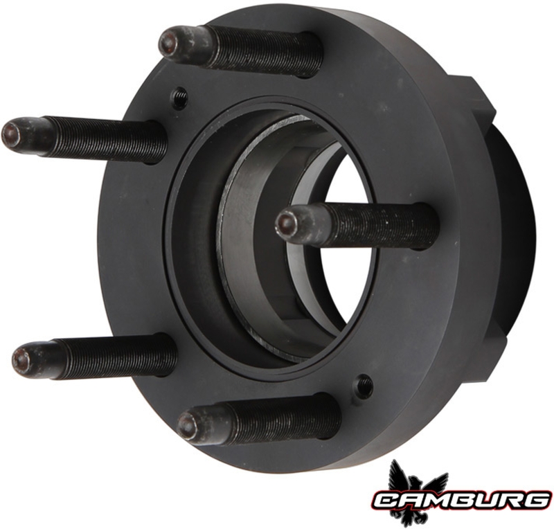 Our Camburg 2.25 full-float rear hubs are a great lower cost option for PreRunners and lighter weight race trucks. They are available in 5 on 5.5" and 6 on 5.5" bolt patterns with 35 or 40 spline drive plates. Our 2.25 lightweight hub design has a wider bearing spread compared to 2.5 GN hubs for increased strength and longevity. We also use larger 7" round material for the hub body for increased strength around the wheel stud area. We CNC machine the hubs in-house from 6061-T6 aluminum, then type II anodize them matte black. We use large 5/8-18 large wheel studs with our tapered a hub-centric center caps that help get the wheel on when you’re out on the race course where time is critical. We supply them with high quality Timken bearings and races along with SKF seals that utilize our bolt-on stainless retainers for added protection and retention. Our drive plates are machined from 4340 chromoly, broached, heat-treated, stress relieved and nickel plated gray for corrosion resistance. Our red brake rotor adapters round out the package with all the necessary hardware, O-rings, etc. and bearing preload spacers. Simple things like drilled head bolts to safety wire the brake rotor adapters on show the attention to detail with our hub kits that you don’t get from other companies. To complete this setup you’ll need our weld-in spindle snouts and our custom spindle nut wrench. Wheels must have 4.25" center-bore and machined for 5/8" wheel studs.