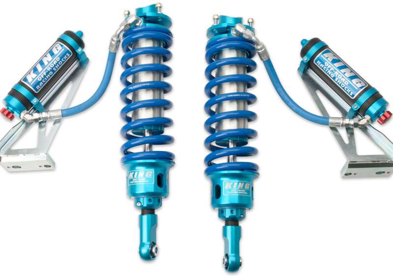 Our King 3.0 Performance kit for the Toyota Tacoma includes larger 3.0 series front coilovers with compression adjusters, improving ride and handling both on and off-road. The kit also includes upper arms that address limitations of stock arms, increasing wheel travel and correcting suspension geometry. The rear features King's 3.0 bypass shocks with increased oil capacity and adjustable damping for better control.