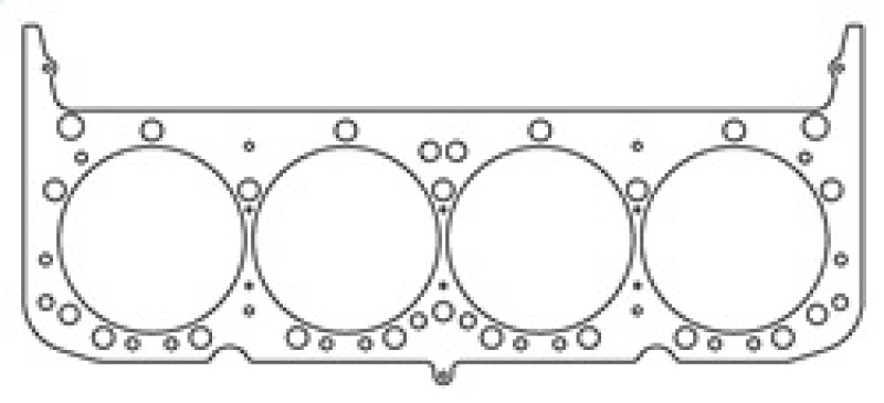 Comprised of multiple embossed layers of stainless steel with the outer layers utilizing a Viton rubber coating. Compressed operating thickness is 0.075". With Steam Holes. Cometic MLS (Multi-Layer Steel) Head Gaskets provide maximum sealing performance for todays high output engines and require no sealants. MLS gaskets are ideal for both aluminum heads to aluminum blocks and aluminum heads to cast iron blocks. They can withstand the shearing force created by the two materials. MLS gaskets have increased strength because they are comprised of multiple layers of stainless steel; which also creates the ability to rebound and resist corrosion. The outer layers are embossed and coated on both sides with Viton (a flour elastomer rubber based material that is heat resistant to 250 C/ 482 F). Viton is designed to meet the demands of a variety of harsh sealing environments, load conditions, and surface finishes. The center or shim layer is uncoated stainless steel, which can be varied to accommodate multiple thickness requirements.