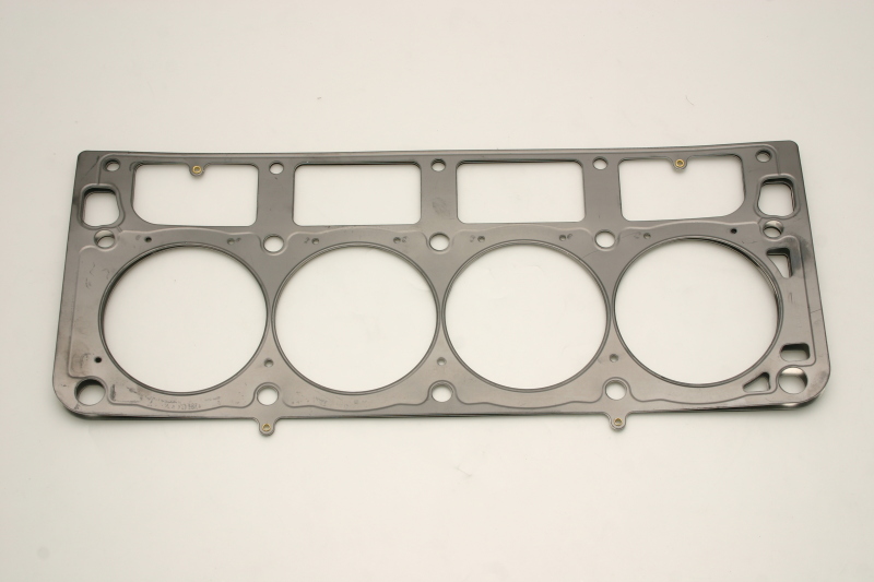 Comprised of multiple embossed layers of stainless steel with the outer layers utilizing a Viton rubber coating. Compressed operating thickness is 0.045". With MID Sleeves. Cometic MLS (Multi-Layer Steel) Head Gaskets provide maximum sealing performance for todays high output engines and require no sealants. MLS gaskets are ideal for both aluminum heads to aluminum blocks and aluminum heads to cast iron blocks. They can withstand the shearing force created by the two materials. MLS gaskets have increased strength because they are comprised of multiple layers of stainless steel; which also creates the ability to rebound and resist corrosion. The outer layers are embossed and coated on both sides with Viton (a flour elastomer rubber based material that is heat resistant to 250 C/ 482 F). Viton is designed to meet the demands of a variety of harsh sealing environments, load conditions, and surface finishes. The center or shim layer is uncoated stainless steel, which can be varied to accommodate multiple thickness requirements.