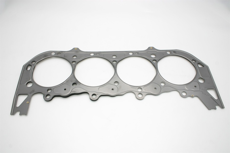 Comprised of multiple embossed layers of stainless steel with the outer layers utilizing a Viton rubber coating. Compressed thickness is 0.060". 4 Bolts in Valley. Cometic MLS (Multi-Layer Steel) Head Gaskets provide maximum sealing performance for todays high output engines and require no sealants. MLS gaskets are ideal for both aluminum heads to aluminum blocks and aluminum heads to cast iron blocks. They can withstand the shearing force created by the two materials. MLS gaskets have increased strength because they are comprised of multiple layers of stainless steel; which also creates the ability to rebound and resist corrosion. The outer layers are embossed and coated on both sides with Viton (a flour elastomer rubber based material that is heat resistant to 250 C/ 482 F). Viton is designed to meet the demands of a variety of harsh sealing environments, load conditions, and surface finishes. The center or shim layer is uncoated stainless steel, which can be varied to accommodate multiple thickness requirements.