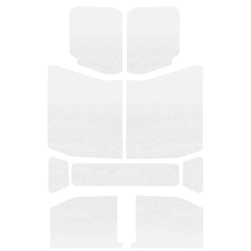 Riding in a Jeep(R) is great fun except for the truck's propensity for interior noise that makes it difficult to engage in conversations or even enjoy vehicle audio systems. Now there is an easy solution. Boom Mat's new Jeep(R) Wrangler Sound Deadening HeadLiner provides a simple pre-shaped peel and stick kit that dresses up the interior of Jeep hard tops while minimizing annoying outside noise and vibrations while insulating from exterior weather conditions. Installed Boom Mat's new Sound Deadening HeadLiner has been tested to reduce noise levels from 3 to 4 decibels. This is a significant change in sound level that will improve overall interior acoustics so Jeep occupants can enjoy audio system and have conversations without excessive and irritating noise distractions. Headliner reduces noise levels 3 to 4 decibels Reduces radiant heat from roof Improves acoustics inside A significant change in noise level that will make it easier to have conversations & enjoy your favorite music Open Cell Polyurethane Foam Finish is a Polymer Surface Treatment