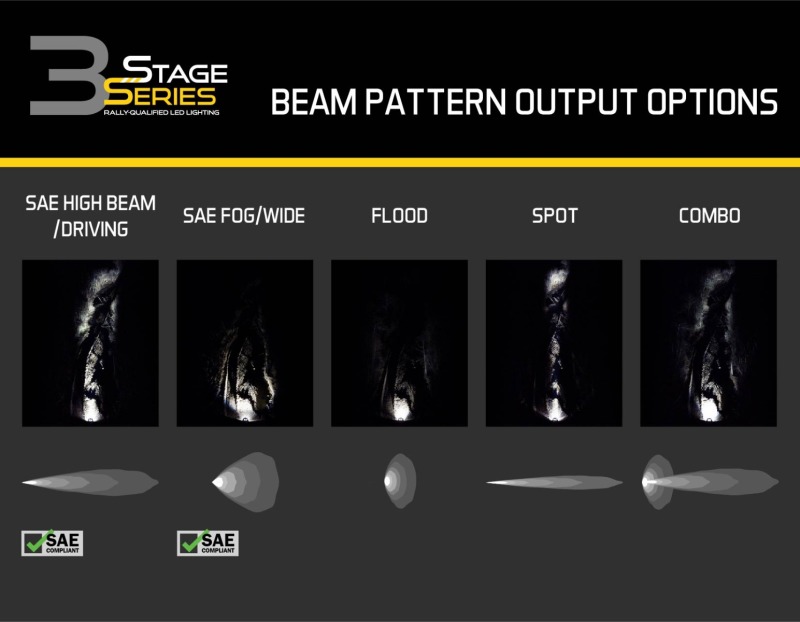 Features Modern TIR optics provide highest intensity on the market Backlight accent feature, available in white, amber, red, and blue Durable powdercoated aluminum construction Integrated Deutsch-style connector Engineered and Assembled in USA Overview Introducing the SS3 3 inch LED Pod! Featuring higher output intensity than any other 3 inch light on the market, these LED pods have been designed for maximum functionality, with custom-engineered TIR optics shining in highly useful beam patterns, all in a durable package. All Stage Series LED pods are available in a cool white or selective yellow color, and sport or pro power levels. Focused. Traditional optics like reflectors or simple lenses lose light internally and to glare, so not all of the light shines on target. Instead, the custom-engineered TIR optic in the SS3 collects all of the light from the LED, and directs it only where you need it, drastically reducing glare and improving total efficiency. The total intensity of the SS3 is much greater than other LED pods using basic optics or reflectors with a standard outer lens. Backlight Functionality. The Stage Series 3inch LED Pod is now available with a distinctive backlight, in your choice of white, amber, red, and blue. The SS3's backlight fully illuminates the TIR optic, providing a more unique and modern look than the small indicator LEDs found in other products. Simple connections. All SS3 LED pods feature a custom-molded DT type Deutsch-style connector on the back, and come with a 6-inch pigtail with bare leads.