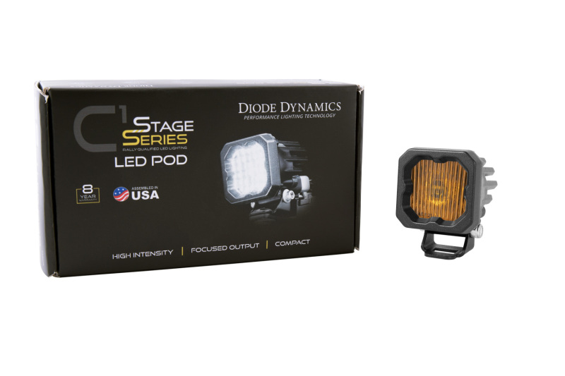 FeaturesCompact single-LED form factorSAE-compliant road-legal outputSingle automotive-grade Osram HX Boost 20-watt LEDBacklighting in a brilliant amber colorIntegrated Deutsch-style connectorDesigned torture tested and assembled in USAOverviewIntroducing the Stage Series C1 LED Pod! Featuring custom-engineered TIR optics combined with a single high-power LED chip these pods have been designed for maximum performance and light output in our most compact versatile package yet. The SSC1 can be mounted virtually anywhere on your car truck motorcycle or UTV including spots where larger LED pods won't fit.Focused. Traditional optics like reflectors or simple lenses lose light internally and to glare so not all of the light shines on target. Instead the custom-engineered TIR optic in the Stage Series C1 collects all of the light from the LED and directs it only where you need it drastically reducing glare and improving total efficiency. Functional Output. The SSC1 SAE Fog was designed with optical simulation modeling to create a highly effective and road-legal fog light pattern. It meets the SAE J583 standard as a Foglamp for legal on-road use and will fully illuminate the area in front of your vehicle. With just one LED the SSC1 is the smallest aftermarket fog lamp on the market! Backlight Functionality The Stage Series C1 LED Pod includes a distinctive backlight feature as well. The SSC1's backlight fully illuminates the TIR optic providing unique accent lighting that you won't find in other single-LED pods on the market.Simple connections. All Stage Series C1 LED pods feature a custom-molded DT type Deutsch-style connector on the back and come with a 6-inch pigtail with bare leads.