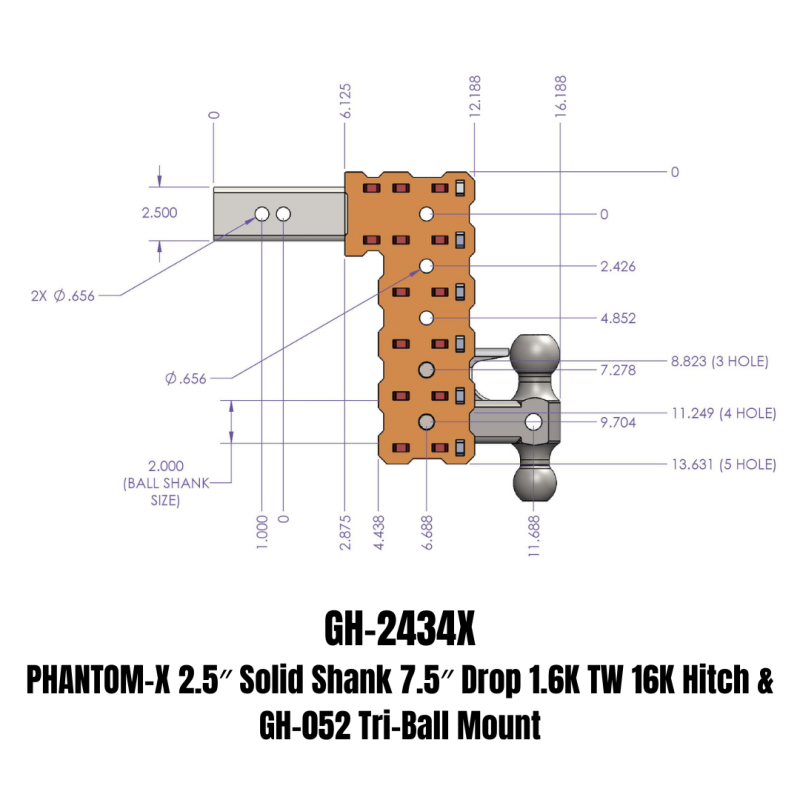 The PHANTOM-X 16K Drop Hitch is a competitively priced hitch perfect for heavy-duty towing. The PHANTOM-X Hitch is compatible with 2.5" truck receivers and is available with a dual-ball mount or a tri-ball mount. It is also offered with a pintle lock, allowing users the ability to tow with a lunette ring trailer. GEN-Y's innovative stacked tube design allows customers the ability to adjust the ball mount up or down in order to achieve the right amount of drop every time!