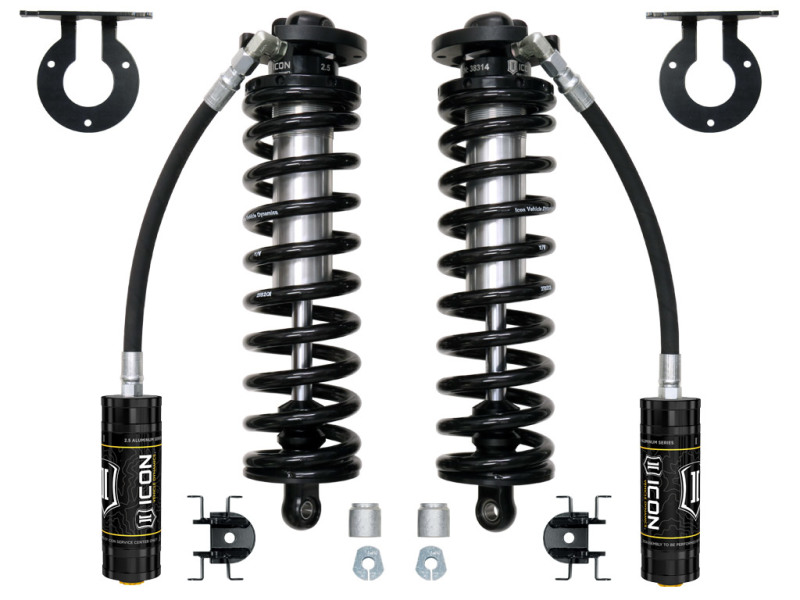 ICON's 2.5 VS Series Remote Reservoir Bolt-In Coilover Conversion Kit will add a new level of performance and adjustability to 2005-2023 F-250 and F-350 pickup trucks. The advantage of utilizing a coilover conversion kit is that they have been designed to increase the overall damping ability of the vehicle while at the same time allowing for user-defined ride height adjustment. The 2.5" Remote Reservoir Coilover featured in these kits is based off of ICON’s 2.5 VS Series shock line - meaning that features like ICON engineered coil springs, FK Rod End bearings, and vehicle-specific valving come standard. Quality machined components and a fully serviceable design make for a product that will stand the test of time, yet retain the ability to be rebuilt or re-valved as necessary.