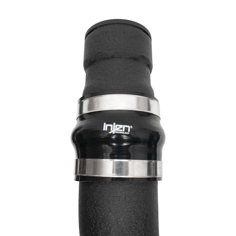 This hot side charge pipe is an upgrade over the factory unit and is manufactured from oversized mandrel-bent 6061 aluminum and every bend and TIG weld is completed by hand at the Injen Technology headquarters in Pomona, California. Having an internal diameter of 3.00in, this hot side charge pipe is able to reduce restriction and quickly transfer hot air smoothly to the intercooler. It also aides in balancing airflow into the intercooler to improve performance and also helps lower engine damaging exhaust gas temperatures (EGTs).