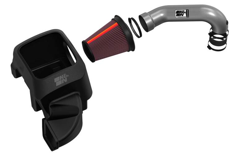 This K&N NextGen Aluminum cold air intake system is engineered for your Dodge/Ram 1500 V8 5.7L F/I. An American 6063 aluminum rigid tube helps increase the volume of airflow up to 30% to your engine and provides an increase up to 16.2 horsepower and 18.7 torque with no tune required. This intake system is paired with a washable, reusable High-Flow LIFETIME Air Filter featuring oiled cotton filter media. The oversized, conical design allows you to go up to 100,000 miles between filter services under normal highway driving conditions. A custom designed NextGen air box helps protect intake air from the high temperature of your engine bay, and the entire system can typically be installed in less than 60 minutes.