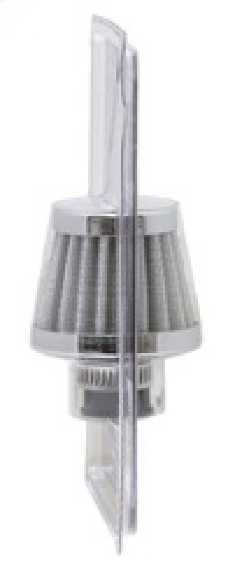 K&N crankcase vent filters are perfect for racing applications, vintage cars or individuals who want to add some aesthetics to their classic carbureted engine. The cone-shaped 62-1600WT crankcase vent filter has a K&N embossed chrome top and chrome base. The flange clamps directly onto a 3/8 to 1/2 inch metal or plastic tubing where venting is needed. Constructed with a white colored synthetic media it can be cleaned and reused repeatedly. Note: Legal in California only for racing vehicles which may never be used, registered, or licensed for use upon a highway. See knfilters.com for CARB status on each part for a specific vehicle.
