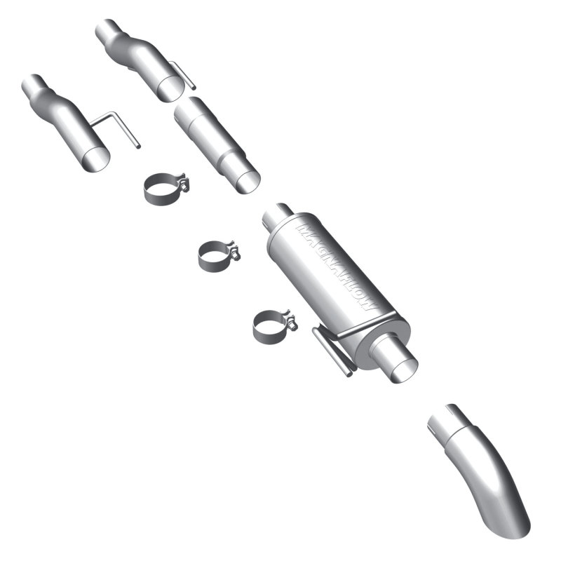The MagnaFlow 2011-2014 Ford F-150 Off-Road Pro Series Cat-Back Performance Exhaust System 17137 brings additional off-roading prowess and our deep signature exhaust note to your 3.7L, 5.0L, 6.2L 2011-2014 Ford F-150 with a weight-optimized, dyno-tested, corrosion resistant and durable stainless steel design engineered to closely hug the undercarriage for improved ground clearance. Exhaust kit 17137 is engineered to produce Very Aggressive exterior and Aggressive interior sound levels. Extensive 3D scanning was used during the development of this Ford F-150 exhaust system to create a direct-fit design, enabling a do-it-yourself installation process. 17137's emissions-legal cat-back design replaces all your truck's exhaust components from the catalytic converter on back with its 3in. diameter mandrel bent main piping that passes through 1 Straight-Through mufflers before ending in a turndown before rear axle exit with 3in. Satin Clamp-On Single Wall Turndown Cut Edge tips. Exhaust system 17137 is produced using advanced CNC precision robotic manufacturing techniques and backed by MagnaFlow's limited lifetime warranty.
