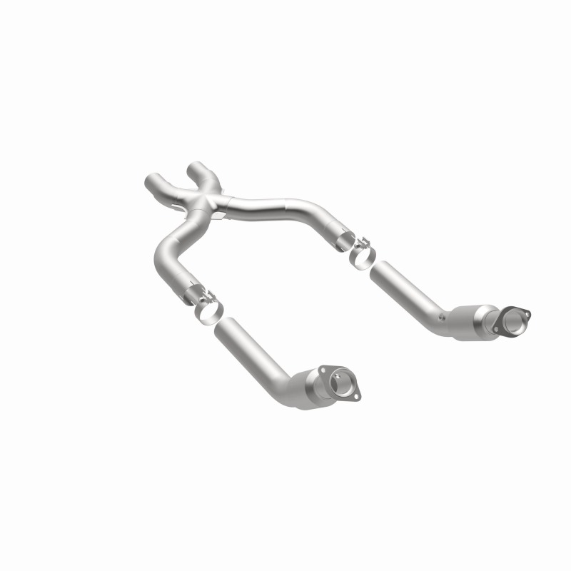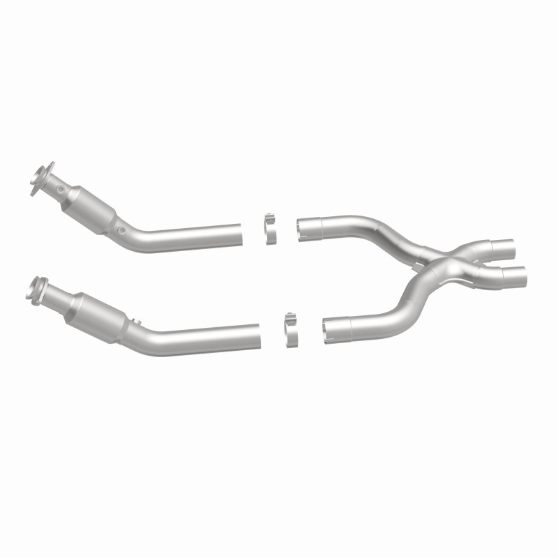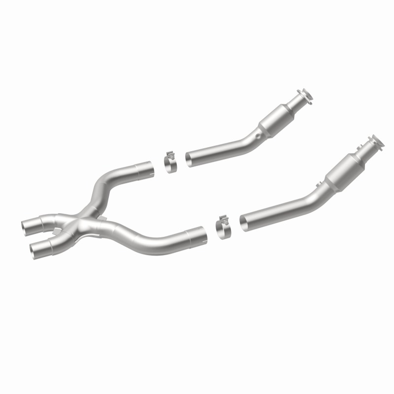 Keep the check engine light off with MagnaFlow OEM Grade Federal/EPA Compliant Direct-Fit Catalytic Converter 21-625. With features including free-flowing mandrel-bent tubing and highly corrosion resistant stainless steel construction, easily install this spun body converter yourself using the proper tools, no cutting or welding required. MagnaFlow's state-of-the-art metrology department uses the latest 3D scanning systems during research and development, so you can be confident that your new part will fit and function like the original equipment. By replicating the OE spun body design, the single laser fusion weld greatly reduces the possibility of a leak, and our compact, low-mass design also allows for greater thermal efficiency. This direct-fit catalytic converter is designed specifically for the 2013-2014 Ford Mustang and interchanges with OE part DR3Z-5F250-A. Hardware is included to eliminate the hassle of working with corroded factory parts. This replacement part is designed to meet or exceed Federal emissions requirements set forth by the EPA, complying with legal standards for OBDII Federally registered vehicles with California or Federal/EPA Emission systems.