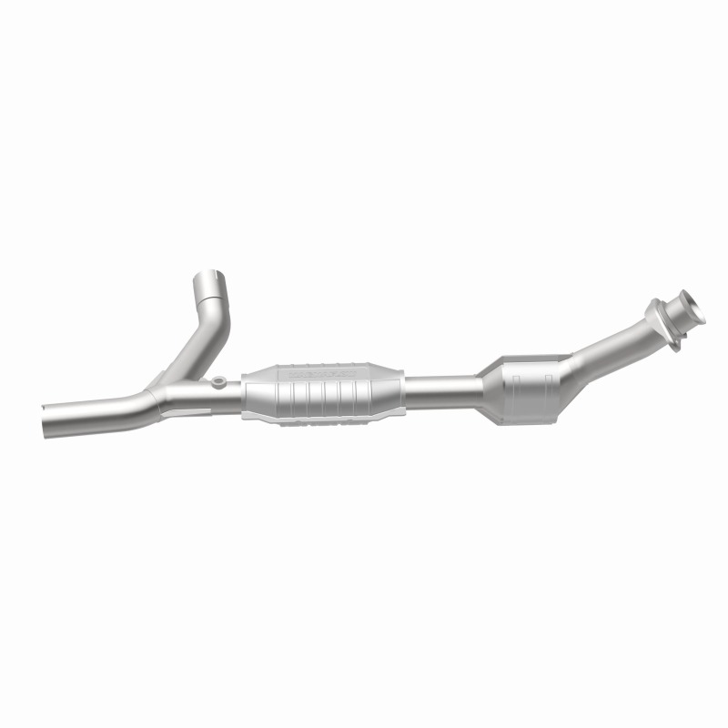 Keep the check engine light off with MagnaFlow California Grade CARB Compliant Direct-Fit Catalytic Converter 447159. With features including free-flowing mandrel-bent tubing and highly corrosion resistant stainless steel construction, easily install this converter yourself using the proper tools, no cutting or welding required. MagnaFlow's state-of-the-art metrology department uses the latest 3D scanning systems during research and development, so you can be confident that your new part will fit and function like the original equipment. By replicating the OE design, the single laser fusion weld greatly reduces the possibility of a leak, and our compact, low-mass design also allows for greater thermal efficiency. MagnaFlow 447159 interchanges with OE parts XC2Z-5E212-AC, XC2Z-5E212-BA, YC2Z-5E212-RA. This replacement part is designed to meet or exceed California Air Resource Board requirements, and has undergone additional testing to comply with CARB guidelines to allow for legal use in California and CARB restricted states, for the listed vehicles.
