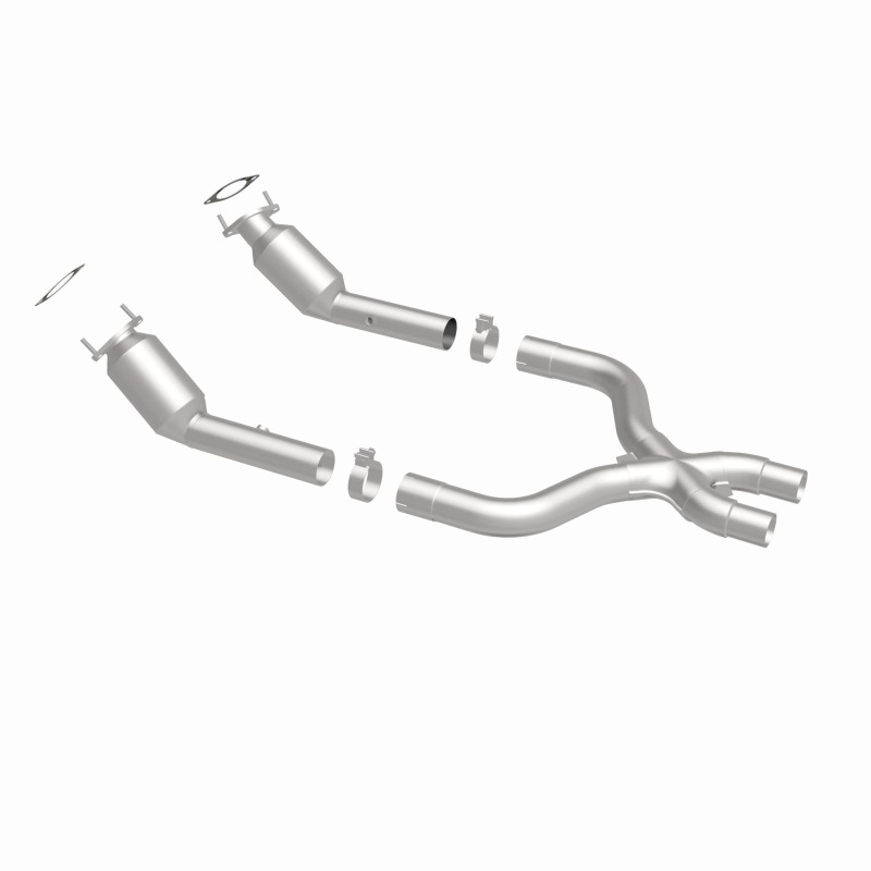 Keep the check engine light off with MagnaFlow Metallic Grade Federal/EPA Compliant Direct-Fit Catalytic Converter 16399. With features including free-flowing mandrel-bent tubing and highly corrosion resistant stainless steel construction, easily install this converter yourself using the proper tools, no cutting or welding required. MagnaFlow's state-of-the-art metrology department uses the latest 3D scanning systems during research and development, so you can be confident that your new part will fit and function like the original equipment. By replicating the OE design, the single laser fusion weld greatly reduces the possibility of a leak, and our compact, low-mass design also allows for greater thermal efficiency. This Direct-Fit Catalytic Converter is designed to fit the 2011-2014 Ford Mustang 5.0L. MagnaFlow 16399 includes (2) 3in. Band Clamps, (2) 2-Bolt Gaskets. This replacement part is designed to meet or exceed Federal emissions requirements set forth by the EPA, complying with legal standards for OBDII Federally registered vehicles with Federal/EPA Emission systems.