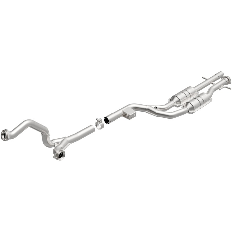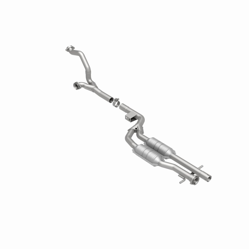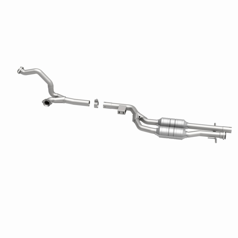 Keep the check engine light off with MagnaFlow Standard Grade Federal/EPA Compliant Direct-Fit Catalytic Converter 23843. With features including free-flowing mandrel-bent tubing and highly corrosion resistant stainless steel construction, easily install this spun body converter yourself using the proper tools, no cutting or welding required. MagnaFlow's state-of-the-art metrology department uses the latest 3D scanning systems during research and development, so you can be confident that your new part will fit and function like the original equipment. By replicating the OE spun body design, the single laser fusion weld greatly reduces the possibility of a leak, and our compact, low-mass design also allows for greater thermal efficiency. Designed to fit the 1990-1993 Mercedes-Benz 500SL and 1994-1995 Mercedes-Benz SL500, this direct-fit catalytic converter also interchanges with OE parts 129 490 83 19 80 and 129 490 83 19, among others. Hardware is included to eliminate the hassle of working with corroded factory parts. This replacement part is designed to meet or exceed Federal emissions requirements set forth by the EPA, complying with legal standards for pre-OBDII Federally registered vehicles.