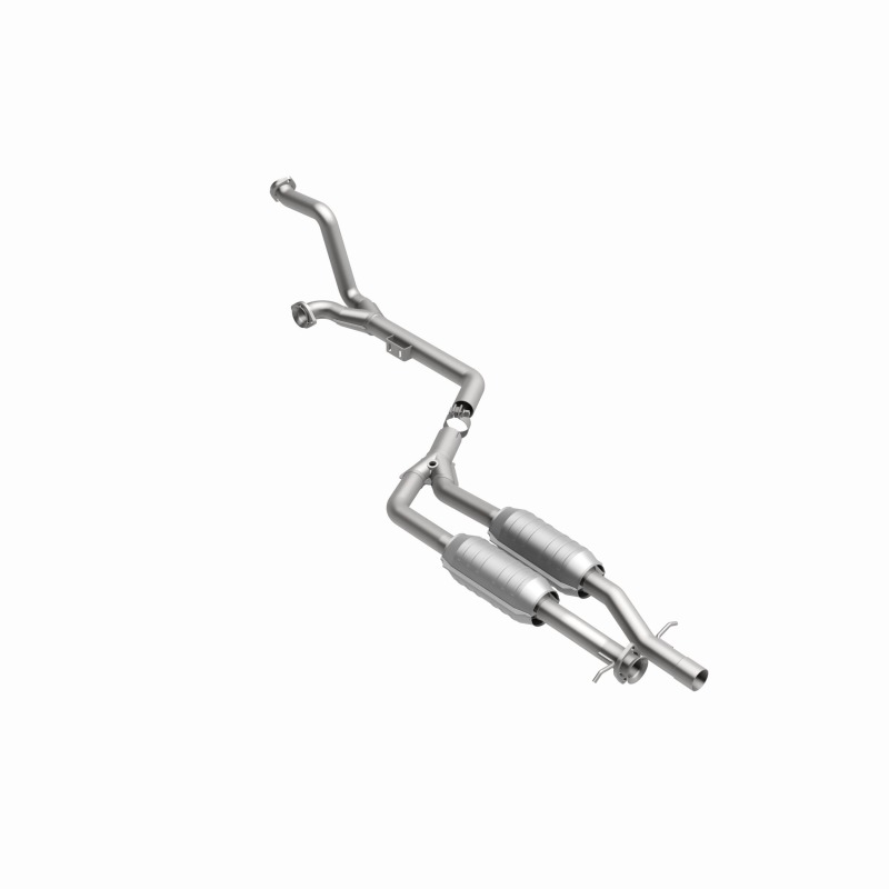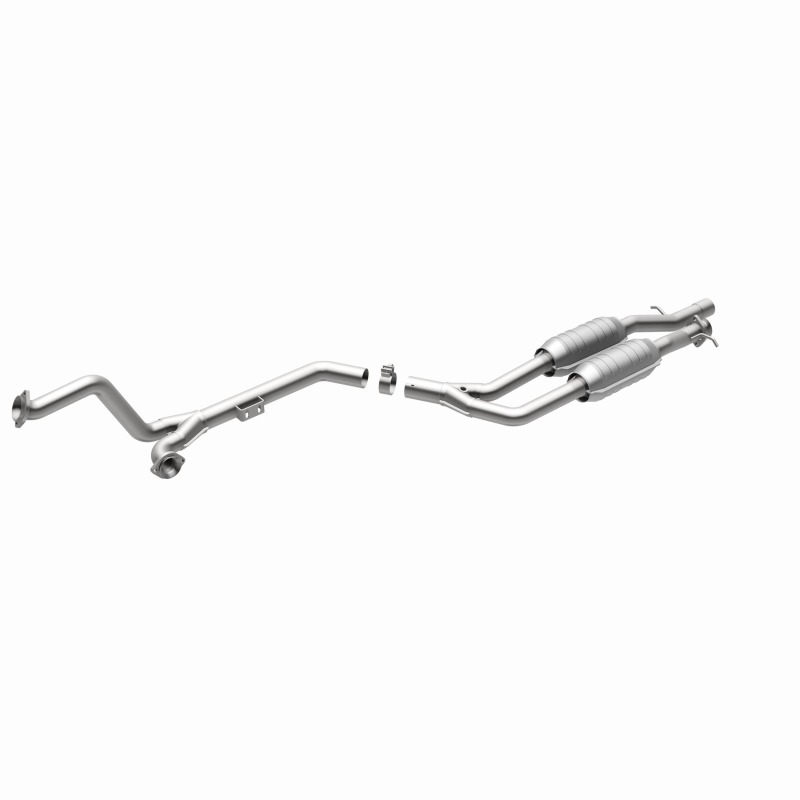 Keep the check engine light off with MagnaFlow Standard Grade Federal/EPA Compliant Direct-Fit Catalytic Converter 23581. With features including free-flowing mandrel-bent tubing and highly corrosion resistant stainless steel construction, easily install this spun body converter yourself using the proper tools, no cutting or welding required. MagnaFlow's state-of-the-art metrology department uses the latest 3D scanning systems during research and development, so you can be confident that your new part will fit and function like the original equipment. By replicating the OE spun body design, the single laser fusion weld greatly reduces the possibility of a leak, and our compact, low-mass design also allows for greater thermal efficiency. This direct-fit catalytic converter is designed specifically for the 1992-1993 Mercedes-Benz 500E. Hardware is included to eliminate the hassle of working with corroded factory parts. This replacement part is designed to meet or exceed Federal emissions requirements set forth by the EPA, complying with legal standards for pre-OBDII Federally registered vehicles.