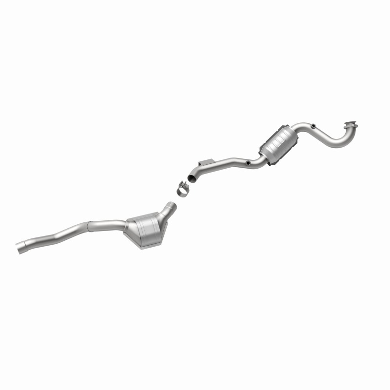 Keep the check engine light off with MagnaFlow California Grade CARB Compliant Direct-Fit Catalytic Converter 447277. With features including free-flowing mandrel-bent tubing and highly corrosion resistant stainless steel construction, easily install this spun body converter yourself using the proper tools, no cutting or welding required. MagnaFlow's state-of-the-art metrology department uses the latest 3D scanning systems during research and development, so you can be confident that your new part will fit and function like the original equipment. By replicating the OE spun body design, the single laser fusion weld greatly reduces the possibility of a leak, and our compact, low-mass design also allows for greater thermal efficiency. This direct-fit catalytic converter is designed specifically for the 1999-2001 Mercedes-Benz ML430 and interchanges with OE parts 163 490 12 36 and 163 490 14 14, among others. Hardware is included to eliminate the hassle of working with corroded factory parts. This replacement part is designed to meet or exceed California Air Resource Board requirements, and has undergone additional testing to comply with CARB guidelines to allow for legal use in California and CARB restricted states, for the listed vehicles.