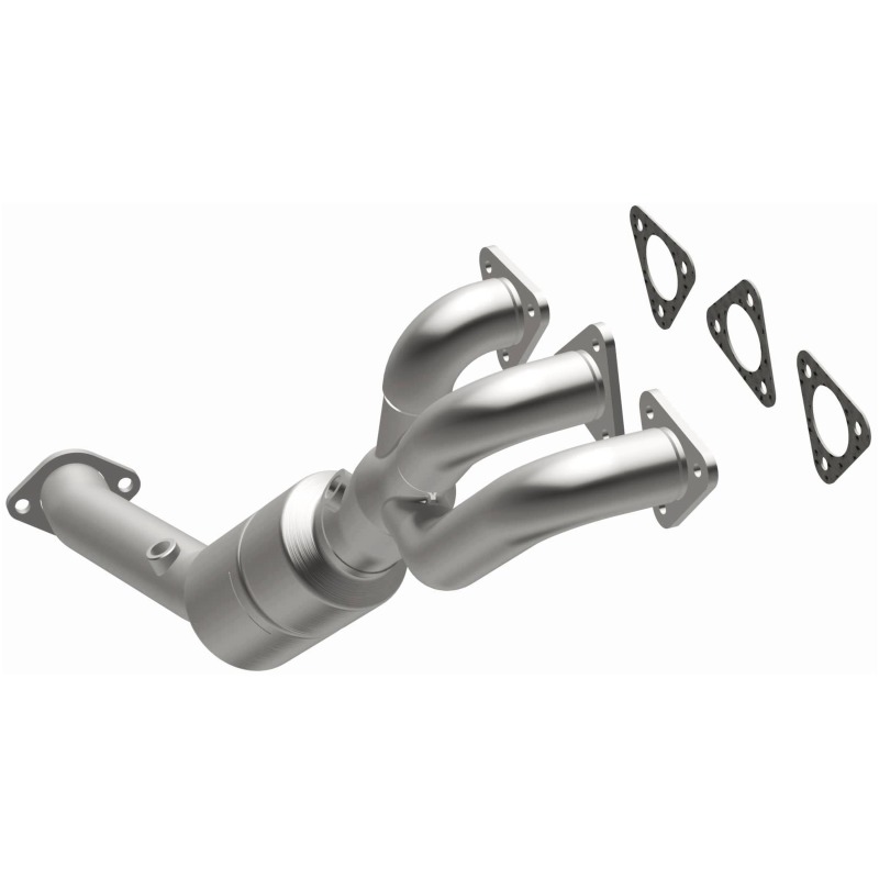 Keep the check engine light off with MagnaFlow OEM Grade Federal/EPA Compliant Direct-Fit Catalytic Converter 49795. With features including free-flowing mandrel-bent tubing and highly corrosion resistant stainless steel construction, easily install this spun body converter yourself using the proper tools, no cutting or welding required. MagnaFlow's state-of-the-art metrology department uses the latest 3D scanning systems during research and development, so you can be confident that your new part will fit and function like the original equipment. By replicating the OE spun body design, the single laser fusion weld greatly reduces the possibility of a leak, and our compact, low-mass design also allows for greater thermal efficiency. Designed to fit the 2001-2006 BMW M3 and 2001-2002 BMW Z3, this direct-fit catalytic converter also interchanges with OE parts 11 62 7 834 673 and 11 62 7 832 063. Avoid potential exhaust leaks by using the included gaskets to get a proper seal. This replacement part is designed to meet or exceed Federal emissions requirements set forth by the EPA, complying with legal standards for OBDII Federally registered vehicles with California or Federal/EPA Emission systems.