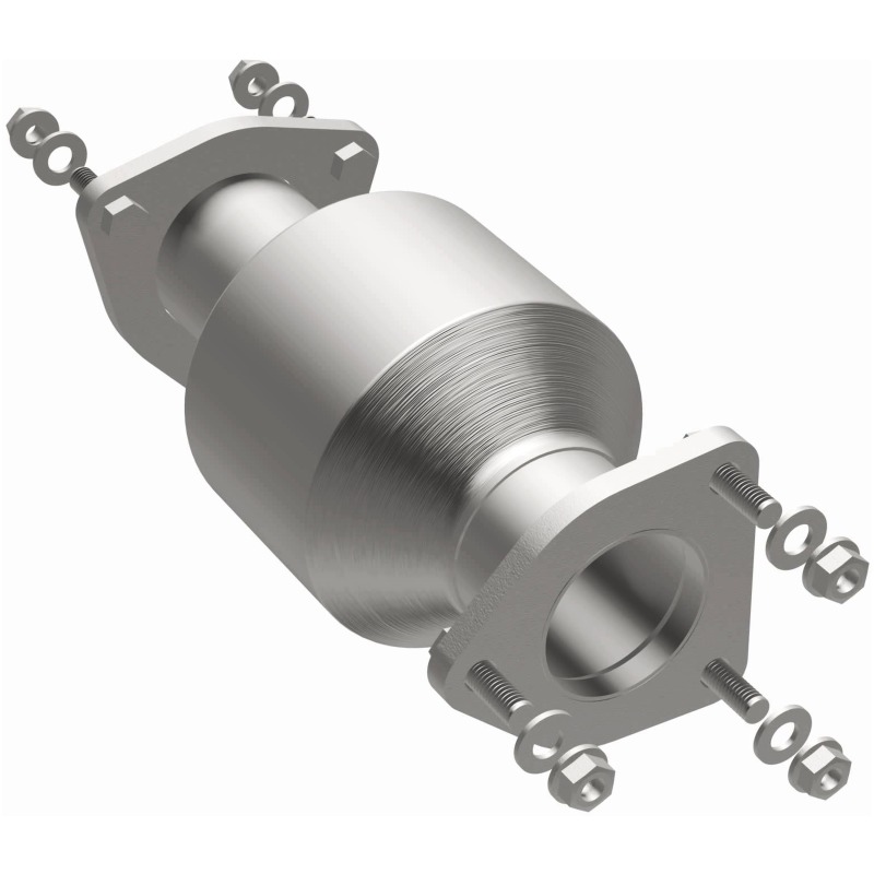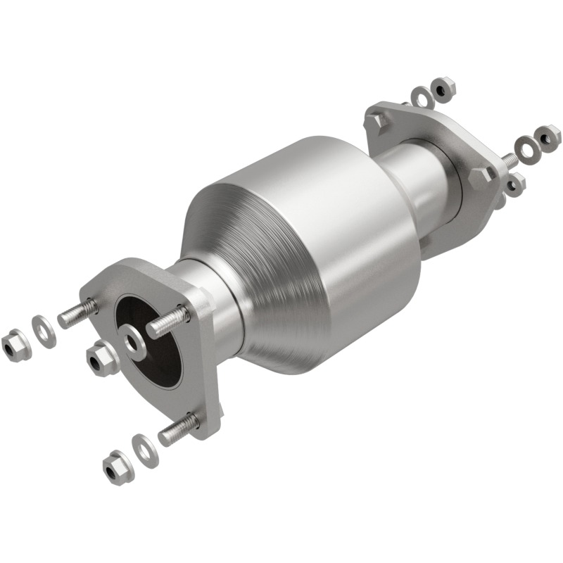 Keep the check engine light off with MagnaFlow OEM Grade Federal/EPA Compliant Direct-Fit Catalytic Converter 21-476. With features including free-flowing mandrel-bent tubing and highly corrosion resistant stainless steel construction, easily install this spun body converter yourself using the proper tools, no cutting or welding required. MagnaFlow's state-of-the-art metrology department uses the latest 3D scanning systems during research and development, so you can be confident that your new part will fit and function like the original equipment. By replicating the OE spun body design, the single laser fusion weld greatly reduces the possibility of a leak, and our compact, low-mass design also allows for greater thermal efficiency. This direct-fit catalytic converter is designed specifically for the 2013-2017 Honda Accord and interchanges with OE part 18150-5A0-A00. Hardware is included to eliminate the hassle of working with corroded factory parts. This replacement part is designed to meet or exceed Federal emissions requirements set forth by the EPA, complying with legal standards for OBDII Federally registered vehicles with California or Federal/EPA Emission systems.