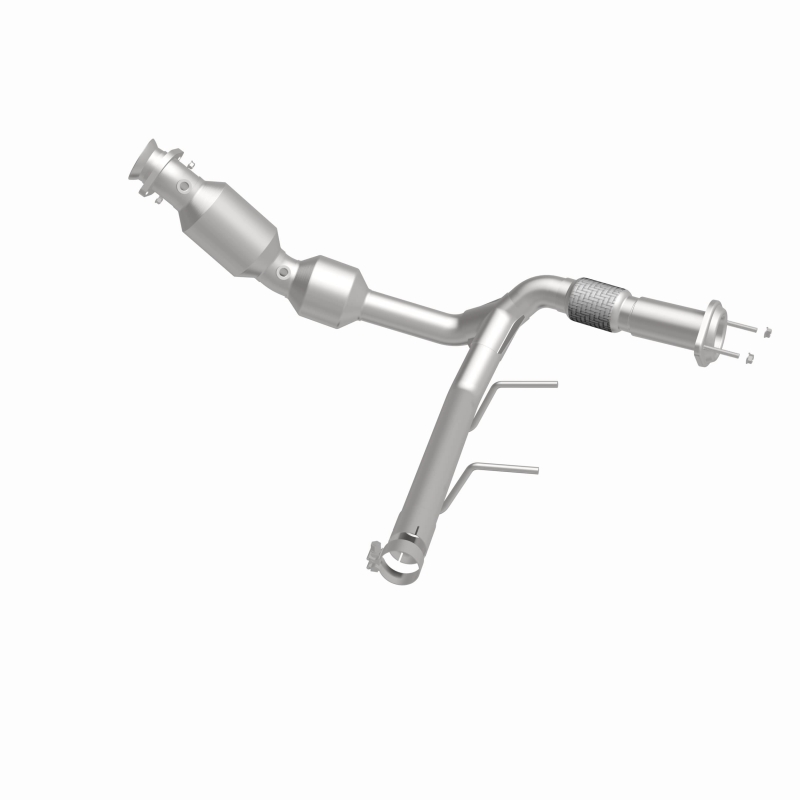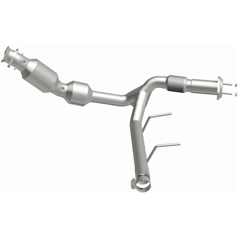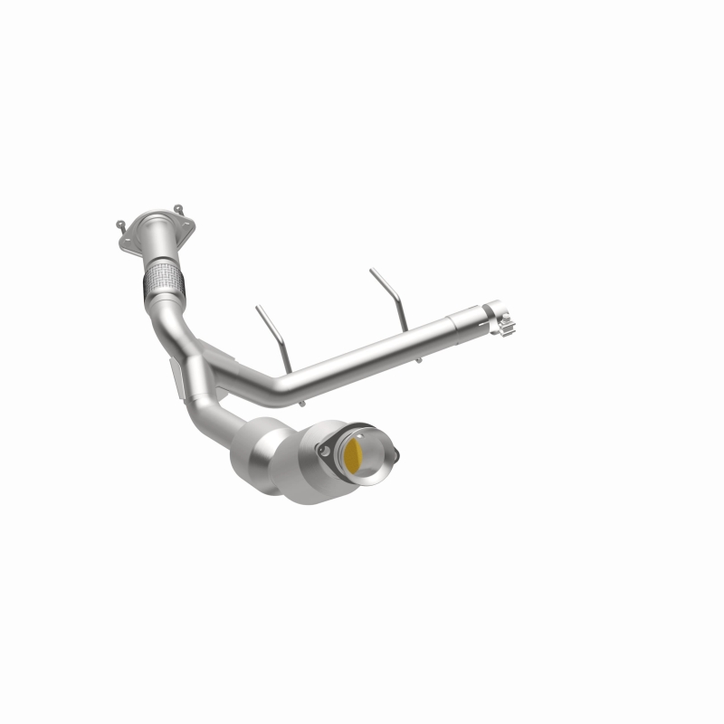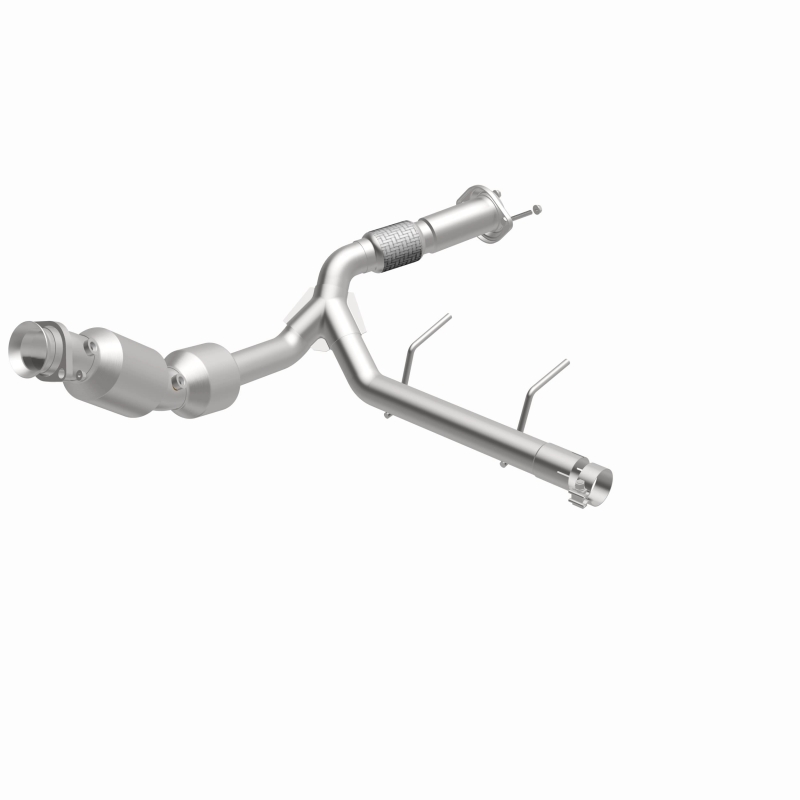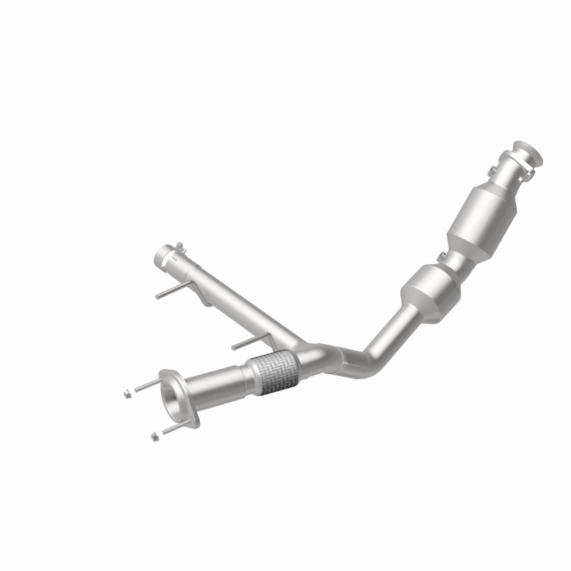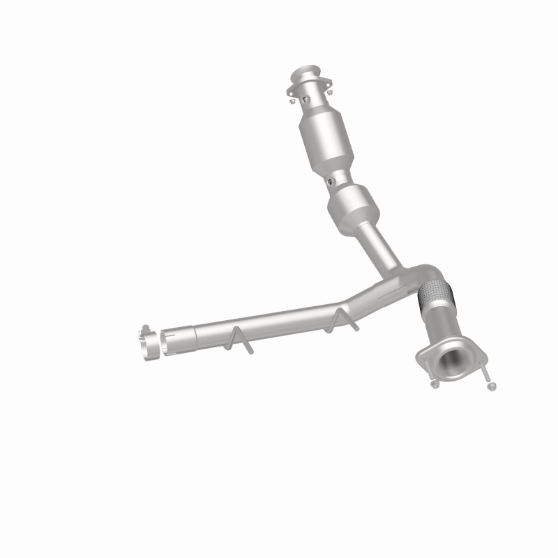 Keep the check engine light off with MagnaFlow OEM Grade Federal/EPA Compliant Direct-Fit Catalytic Converter 280268. With features including free-flowing mandrel-bent tubing and highly corrosion resistant stainless steel construction, easily install this converter yourself using the proper tools, no cutting or welding required. MagnaFlow's state-of-the-art metrology department uses the latest 3D scanning systems during research and development, so you can be confident that your new part will fit and function like the original equipment. By replicating the OE design, the single laser fusion weld greatly reduces the possibility of a leak, and our compact, low-mass design also allows for greater thermal efficiency. This Direct-Fit Catalytic Converter is designed to fit the 2021-2022 Ford F-150 3.5L. MagnaFlow 280268 includes (4) Nuts, (1) Band Clamp, (2) Bolts and interchanges with OE parts ML3Z-5E212-P. This replacement part is designed to meet or exceed Federal emissions requirements set forth by the EPA, complying with legal standards for OBDII Federally registered vehicles with California or Federal/EPA Emission systems.
