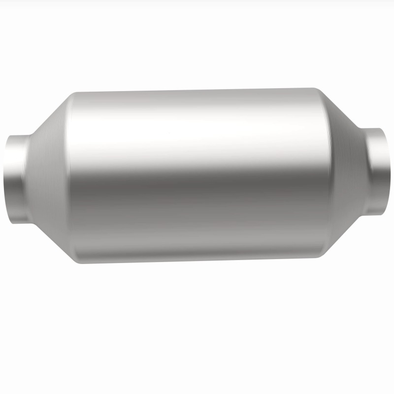 Keep the check engine light off with MagnaFlow OEM Grade Federal/EPA Compliant Universal Catalytic Converter 51809. The Universal design allows the part to fit a wide array of vehicles (cutting and welding required), and the stainless steel construction of this spun body catalytic converter is highly resistant to corrosion. The single laser fusion weld of the spun body greatly reduces the possibility of a leak, and our compact, low-mass design also allows for greater thermal efficiency. This replacement part is designed to meet or exceed Federal emissions requirements set forth by the EPA, complying with legal standards for OBDII Federally registered vehicles with California or Federal/EPA Emission systems.