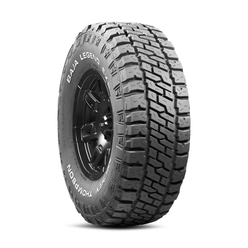 The Baja Legend EXP hybrid all-terrain was developed with a blend of premium materials and legendary design to provide a balance of on-road performance and off-road traction. Featuring legendary Mickey Thompson Sidebiters, large surface area tread elements and wide voids provide the ultimate on-road and trail performance. Silica-reinforced compound fortifies wet performance treadwear durability and tread life backed with a 50,000-mile treadwear warranty. The next-gen high tensile body ply construction provides a smooth ride and durability in a lightweight package.