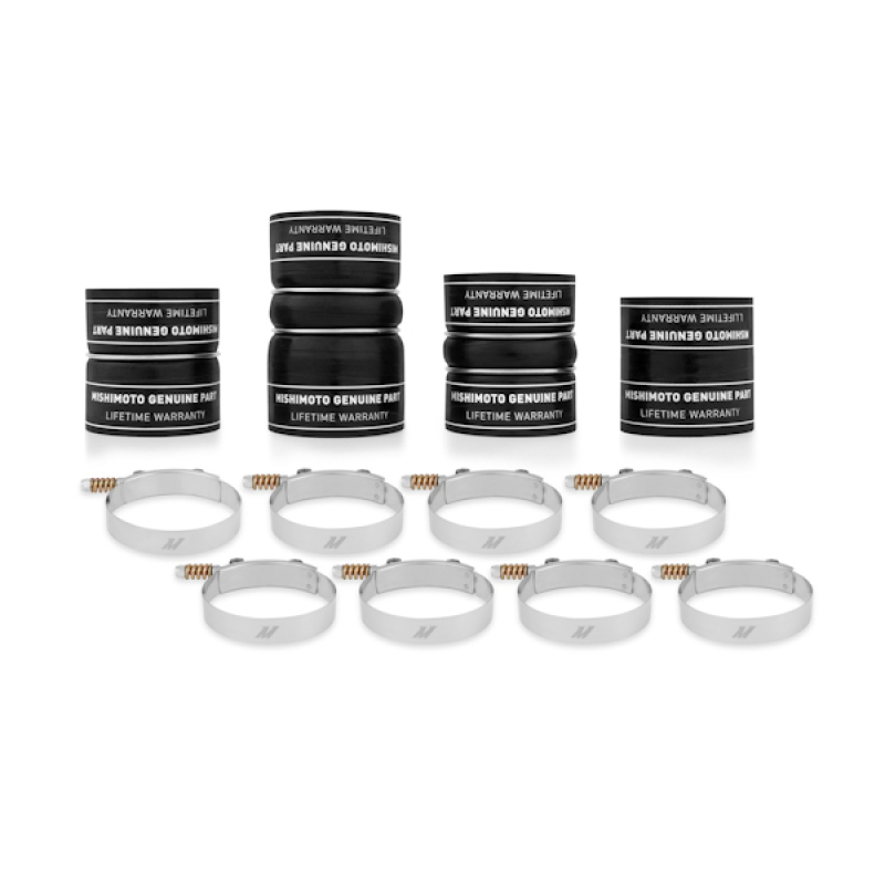 Mishimoto is proud to release a direct-fIt'silicone boot kit with DuraCore technology designed specifically for the 6.4L Ford Powerstroke.Mishimoto DuraCore technology is the synthetic material that comprises the innermost layer of all Mishimoto silicone diesel boots.Compared to normal silicone, DuraCore provides superior resistance to heat, pressure, fuel, and oil.This effectively increases the life of our boots by preventing leaks and blowouts.To add even more reliability this kit includes Mishimoto constant-tension T-bolt clamps for accurate and consistent holding power.As with all our products, the Mishimoto lifetime warranty protects your purchase.