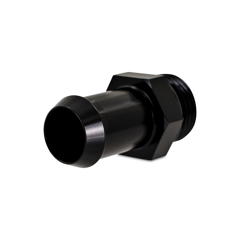 No custom fluid cooler setup or high-performance engine build is complete without high-quality fittings to match. These Mishimoto adapter fittings are CNC-machined from aircraft grade aluminum to exact specifications, ensuring leak-free operation. This fitting adapts -10 ORB thread to a 3/4-in push-on hose barb and is compatible with our universal tube-and-fin crossflow oil cooler. It's CNC-machined from 6061 aluminum and is black anodized for a durable finish. The -10 ORB end is sealed with a Viton O-Ring. Like all of our products, this fitting includes Mishimoto's Lifetime Warranty.
