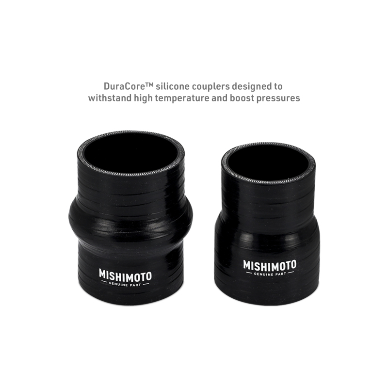 Upgrade your 2024+ Ford Mustang EcoBoost with the Mishimoto Intercooler and Pipe Kit, a complete system designed to maximize airflow, lower intake temps, and boost performance. This kit combines a direct-fit bar-and-plate intercooler with high-flow hot-side and cold-side aluminum pipes, delivering safe, tune-free power gains.--The intercooler features cast aluminum end tanks and fits in the stock location with a 60% increase in core volume. Oversized 63mm inlets/outlets improve flow, while a diverter plate ensures even air distribution. Foam sealing strips and a custom-formed air deflector maximize airflow through the core and reduce NVH. Four EPDM rubber sandwich mounts isolate vibration and add rigidity. Gains of up to 12 hp and 11 ft-lbs of torque are possible with no tuning, and a pre-drilled NPT port allows for auxiliary sensors or data logging.--The included intercooler pipes are made from durable aluminum with cast connections for strength and precise fitment. A cast turbo outlet elbow integrates the blow-off valve seat and retains factory harness clipping points for a clean install. CNC-machined quick-disconnect fittings, DuraCore⢠silicone couplers, high-torque worm-gear clamps, and an ID-matched transition coupler ensure secure, high-flow connections. Extra clearance also allows compatibility with the Mishimoto performance radiator.--Available in polished or wrinkle black finishes, the Mishimoto Intercooler and Pipe Kit provides improved airflow, reduced intake temps, better underhood aesthetics, and long-term durability. Installation is straightforward with all hardware included, and every kit is backed by the Mishimoto Lifetime Warranty.