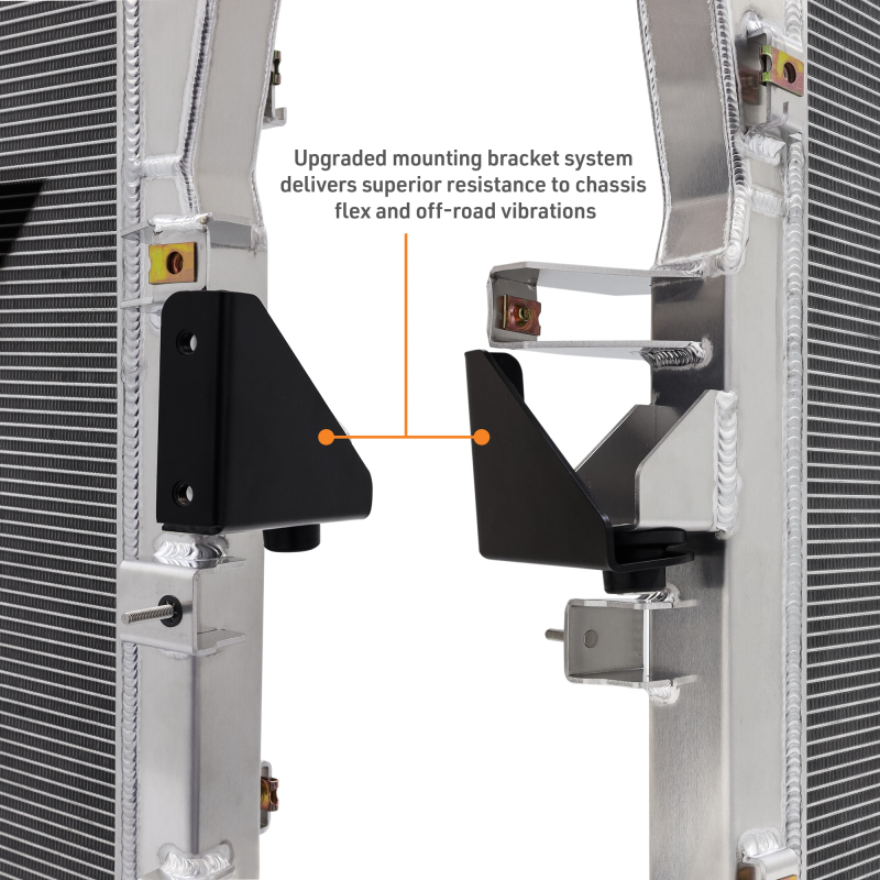 Keep your 2024+ Toyota Tacoma cool and dependable on every drive with a radiator built for strength and endurance. The Mishimoto Performance Aluminum Radiator replaces the stock plastic unit with a fully TIG-welded aluminum design that eliminates weak points and provides reliable performance under tough conditions. A uniquely engineered mounting bracket system, proven through internal vibration testing, delivers exceptional resistance to chassis flex and off-road abuse.--Internal strutted tubes strengthen the core to prevent fatigue over time while a 46% increase in core volume and 23% greater fluid capacity improve heat dissipation and overall cooling efficiency. The built-in 7-row stacked plate transmission cooler outperforms the stock tube-style design, providing superior control of transmission temperatures when towing, off-roading, or running heavier aftermarket parts.--Every detail is crafted for long-term reliability. The increased coolant capacity improves thermal stability, while the magnetic drain plug captures debris to help protect the cooling system. Whether you’re heading into the mountains or navigating daily traffic, this radiator ensures consistent performance and lasting durability, all backed by the Mishimoto Lifetime Warranty.