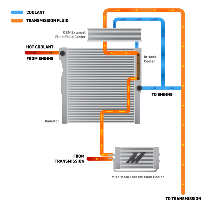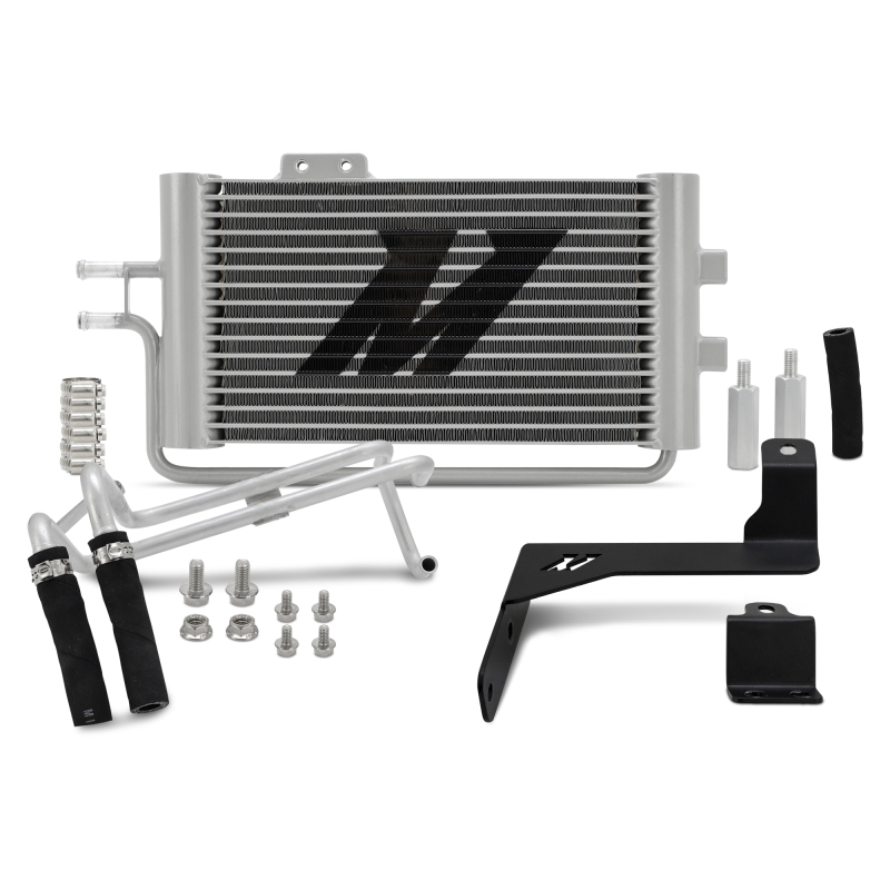 Upgrade the performance and reliability of your 2024+ Toyota Tacoma with our Performance Transmission Cooler. Designed for drivers who tow, off-road, or push their Tacoma hard, this direct-fit system reduces transmission temperatures and lowers overall cooling stress on your vehicle. -- The cooler features a high-capacity tube-and-fin core with high-efficiency internal fins that maximize heat dissipation. By reducing the fluid temperature before it reaches the stock radiator cooler, it decreases load on the cooling system while protecting your transmission from excessive heat. The system still works with the factory coolers to maintain quick warm-up times. -- Installation is simple and complete. The kit includes pre-cut hoses, hose clips to secure the lines, and thick 3mm brackets for a reliable fit. AEM line sections provide proper transmission fluid resistance and add flexibility to the hardlines, ensuring durability and leak-free operation. -- Every cooler is designed, engineered, and tested in the USA and features a robust powder coat to protect from corrosion and environmental damage. Transmission lines meet SAE J1532 standards to ensure high quality and consistent performance. -- With this upgrade, your Tacoma can handle heavy towing, trail driving, and extended off-road use while reducing stress on the transmission and cooling system. Backed by the Mishimoto Lifetime Warranty, this system provides protection for your transmission, ensures reliable performance, and extends the life of your truck. The complete, direct-fit transmission cooler is ready to install and built to last.