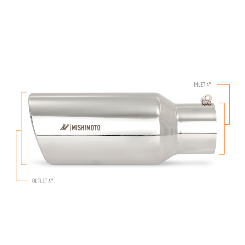 Your exhaust is the most multi-faceted system of your vehicle. It not only has to perform well, but it must also sound and look good. That makes choosing the right exhaust tip a tricky task, but luckily, Mishimoto offers a wide variety of exhaust tips that will put the cherry on top of your build.----Our polished diesel exhaust tips are constructed from 304 stainless-steel with a polished finish and 6-inch slash-cut design for a sleek and aggressive look. Installation of Mishimoto diesel exhaust tips is easy with our slip-fit design that easily fits over existing 4-inch or 5-inch piping and integrated clamp to lock your tip in place. Like all our exhaust and performance parts, these Mishimoto polished stainless-steel diesel exhaust tips are backed by our Mishimoto Lifetime Warranty for a lifetime of style and durability.