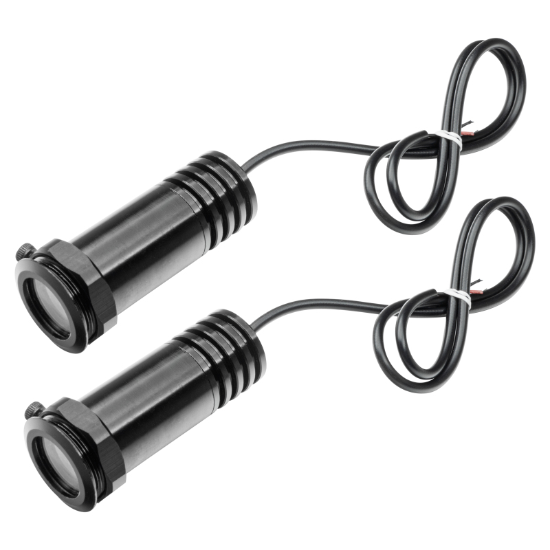 No more guessing if you're parked over a puddle or not! The New ORACLE LED door Projectors re-define the "puddle light" Vividly Projects your favorite logo on the floor surface when you open your vehicle's door, hooks right up to your door's wiring. Q: What is a light GOBO A: Its an acronym for "GO Between Optics". It is an image that can be projected when an light source is introduced. In this case the light source is a high powered LED so the image is crisp, the housing is small, and it puts out very little heat. This product is sure to get some attention with added safety.