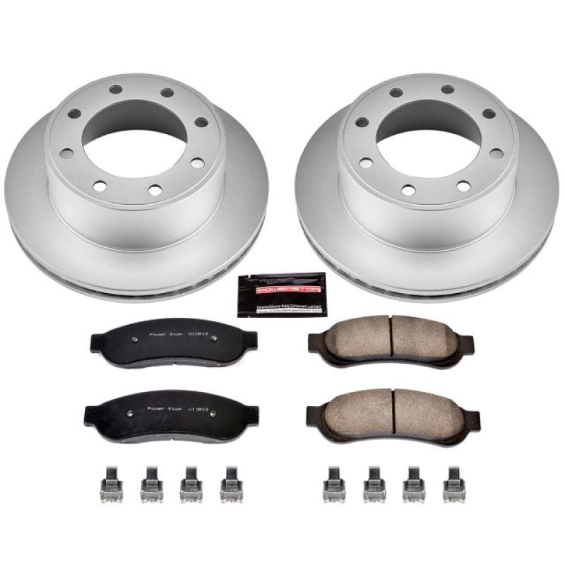 PowerStop is on a mission to deliver an easy way for any driver to upgrade their brakes - no matter where or how they use their vehicle. Our Z17 Evolution Geomet Coated Rotor Brake Kit includes brake pads, rotors, and stainless-steel hardware; everything you need for the affordable, easy replacement brake kit for your daily-driven vehicle. The Z17 Evolution pads feature a low-dust formula, validated through on-vehicle 3rd party tests in the USA, to keep your wheels looking like new. These pads also have multi-layer rubberized shims that insulate noise for virtually silent braking. The rotors are treated with a thin layer of Genuine GEOMET 360 coating to protect against rust and corrosion without diminishing braking performance, and are manufactured to original equipment specifications. If you're looking to refresh the look and braking performance of your old, worn-out brakes, look no further. Say hello to a smooth, quiet commute with the Z17 Evolution Geomet Coated Rotor Brake Kit.