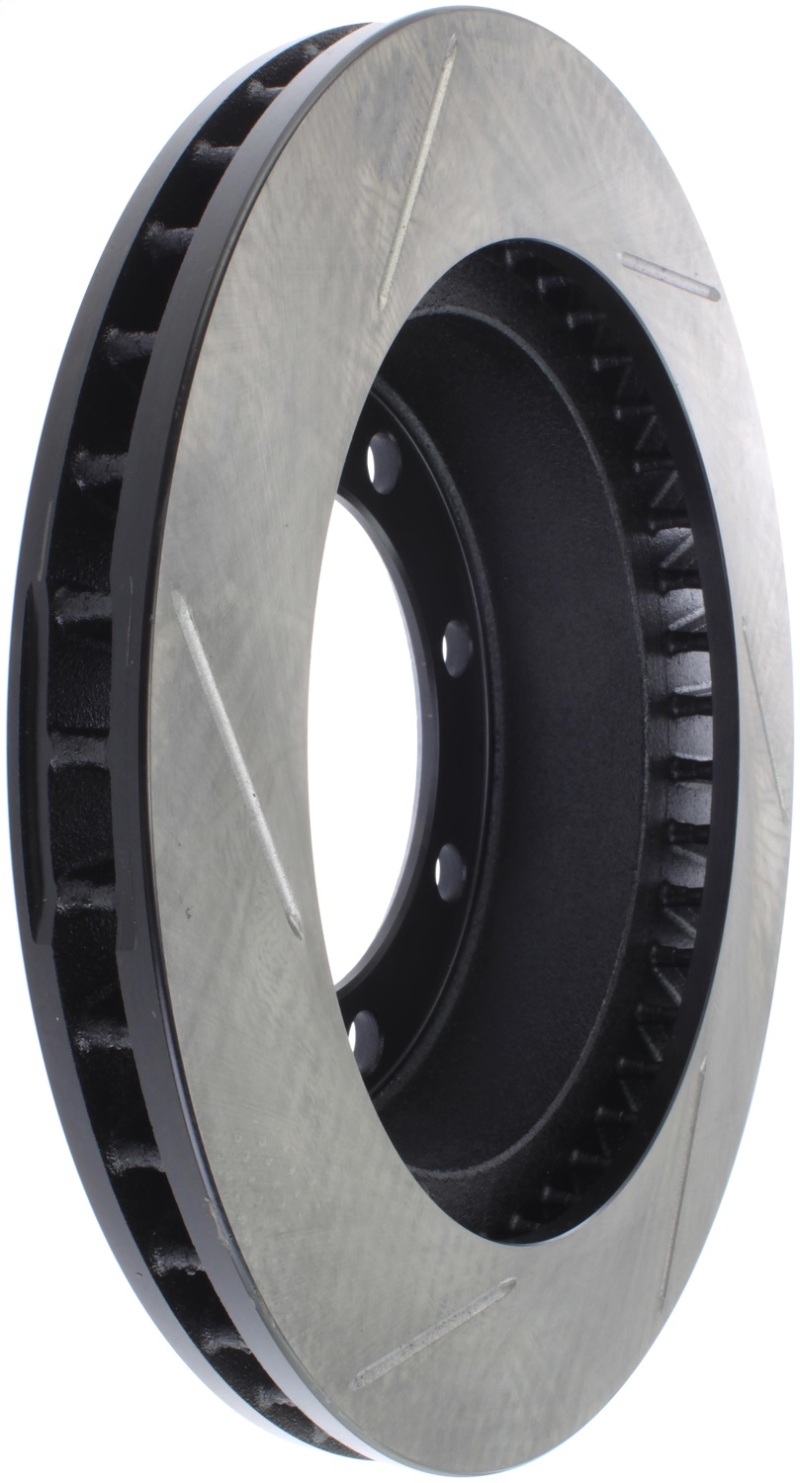 StopTech Slotted Sport Rotors are 1-piece direct replacement brake discs for factory brake systems and stock calipers that look great behind your wheels – and offer significantly improved braking performance. The unique slotting aids with heat and brake dust dispersal; prevents glazing of the pads; adds bite and improves wet and dry braking performance. Built to last; the black e-coating provides protection from corrosion and the high carbon metallurgy (in most applications) offers quieter operation; better crack resistance and increased performance.