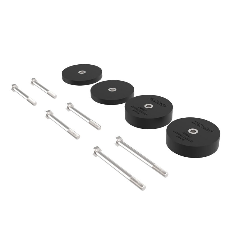 Popular Timbren SES kits were designed to work on pickup trucks with a standard ride height. But installing a lift kit on your pickup truck will increase the distance between the frame and the rear axle and, therefore, compromise the effectiveness of the Timbren SES helper springs. In other words, your lifted truck is still going to squat even after a Timbren SES rear kit has been installed. That's where an approved Timbren spacer kit can fill the gap. This spacer kit will enable you to haul your gear with confidence even if your lifted Chevy Silverado 1500 or your GMC Sierra 1500 has approximately 5.75" - 7.25" of space between the frame and the rear axle. Here's how it works: Each spacer kit comes with two 1 inch and two 1/2 inch spacers along with all the necessary hardware. This handy little kit helps you mix and match the spacers when you add them to the Timbren SES assembly allowing you to achieve your desired ride height. Whether you've got a leveling kit, body lift or full suspension lift, Timbren spacer kits allow you to make effective use of your Timbren SES kit while hauling or towing your gear. How Do I Know If I Need a Spacer Kit? To determine whether you need a spacer kit, measure between the frame and rear axle of the truck when empty. If the gap between frame and axle for your Chevy Silverado 1500 or your GMC Sierra 1500 is approximately 5.75" - 7.25" you will need to order a spacer kit.