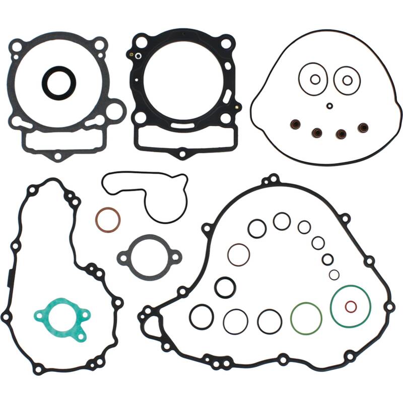 Vertex complete gasket kits are available in two configurations; with or without oil seals. The Complete Gasket kit includes all OEM specified gaskets and o-rings necessary to rebuild the engine, as well as valve stem seals, but does not include oil seals or a formed rubber valve cover gasket.