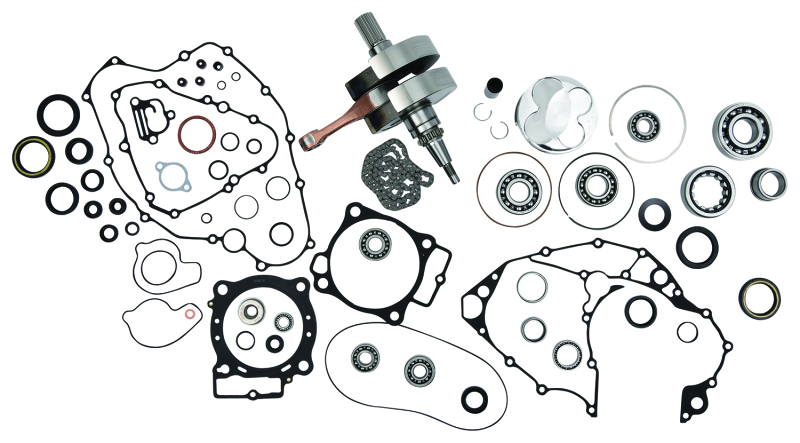 The only complete engine rebuild kit available. Kit includes Hot Rods heavy-duty crankshaft, Hot Rods counter balancer bearing kit (where applicable), Hot Rods main bearing and shaft seal kit, transmission bearing kit, and water pump rebuild kit, Vertex replica piston kit, Vertex complete gasket and oil seal kit, Hot Rods wrist pin bearing, or Hot Cams cam chain (where applicable)