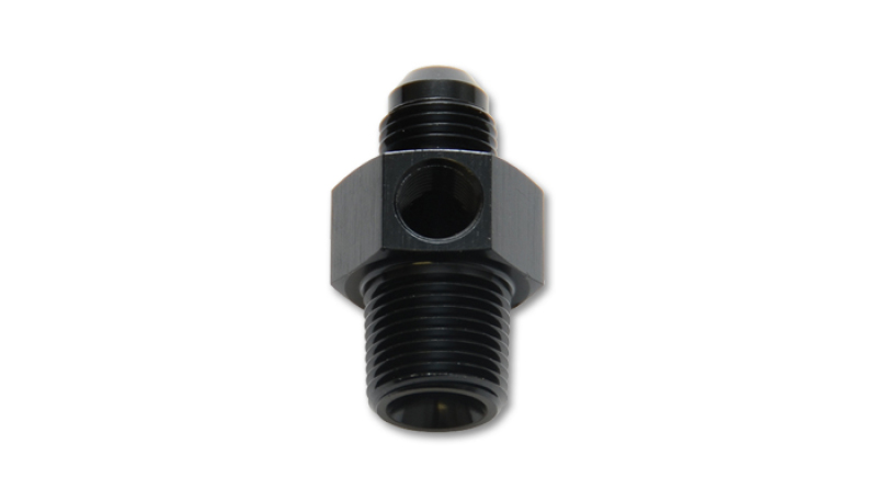 Vibrant Performance Male AN Flare to Male NPT Straight Adapters with 1/8 in. NPT Port are lightweight and constructed from 6061 Aluminum Alloy. Our Male AN Flare to Male NPT Straight Adapters with 1/8 in. NPT Port deliver quality, reliability, smooth flow, ease of assembly and the comfort of an anti-leak seal and are designed to fit most popular oil pumps, fuel pumps, fuel filters and a wide range of other common components. All Vibrant Performance Adapter Fittings are available in anodized black only. Port Plug not included.