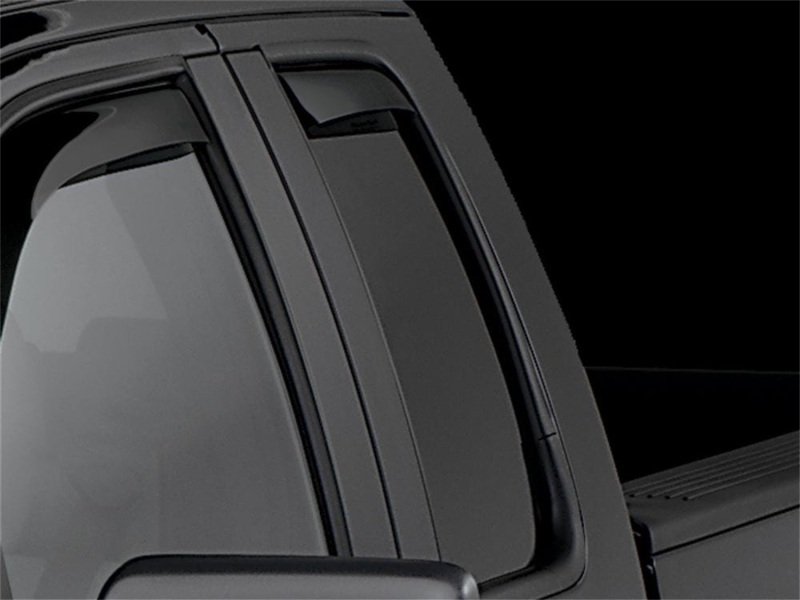 WeatherTech Side Window Deflectors offer you fresh air enjoyment with an original equipment look. They are crafted in Germany from the finest 3mm lightly-tinted acrylic material available. Installation is quick and easy, with no exterior tape needed. WeatherTech Side Window Deflectors are precision-machined to perfectly fit your vehicle. These low profile window deflectors help to reduce wind noise and allow interior heat to escape. Also available in dark tint for most vehicles.